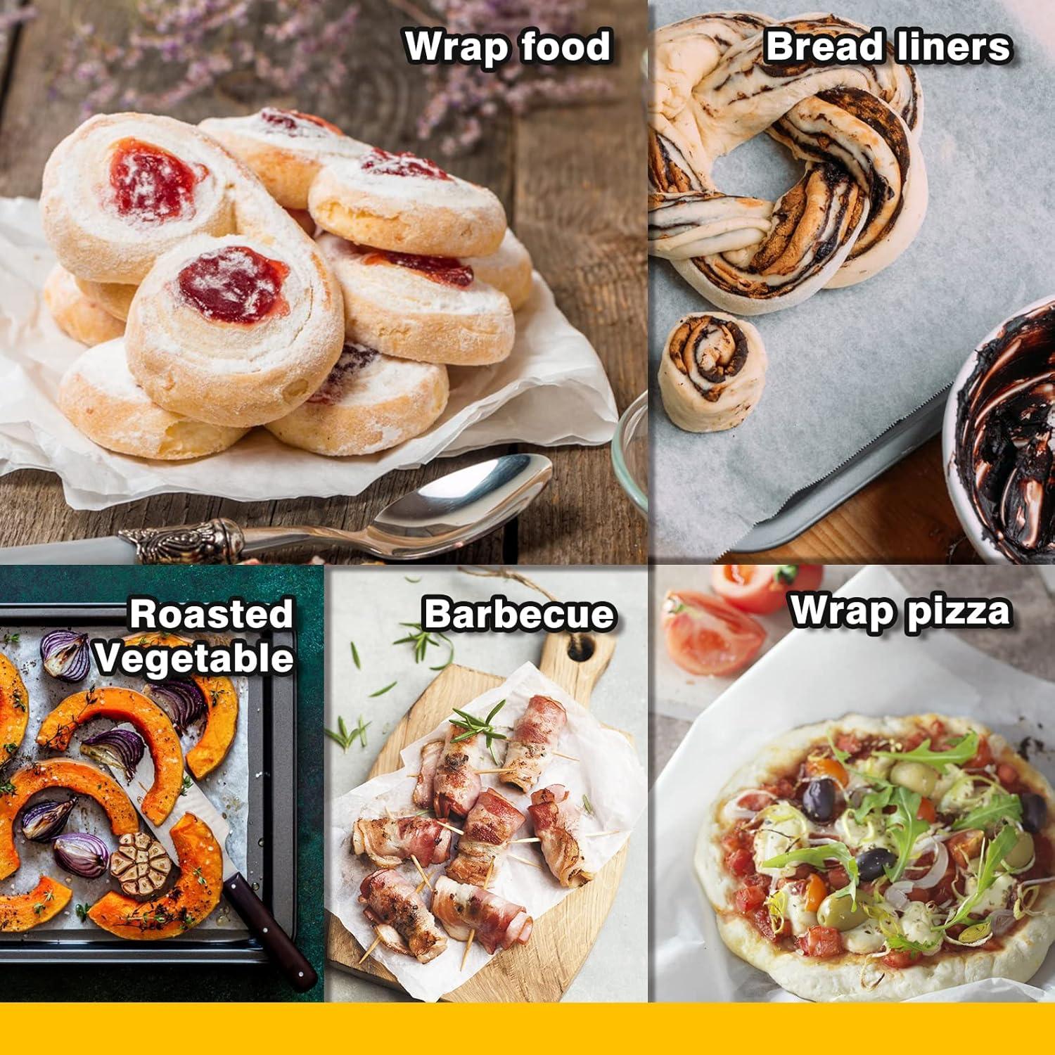 Non-Stick & Easy to Clean – Parchment paper use the double silicone coating side design, so you don't get stick together when you're baking foods. You can easily clean and save your time. Convenient!