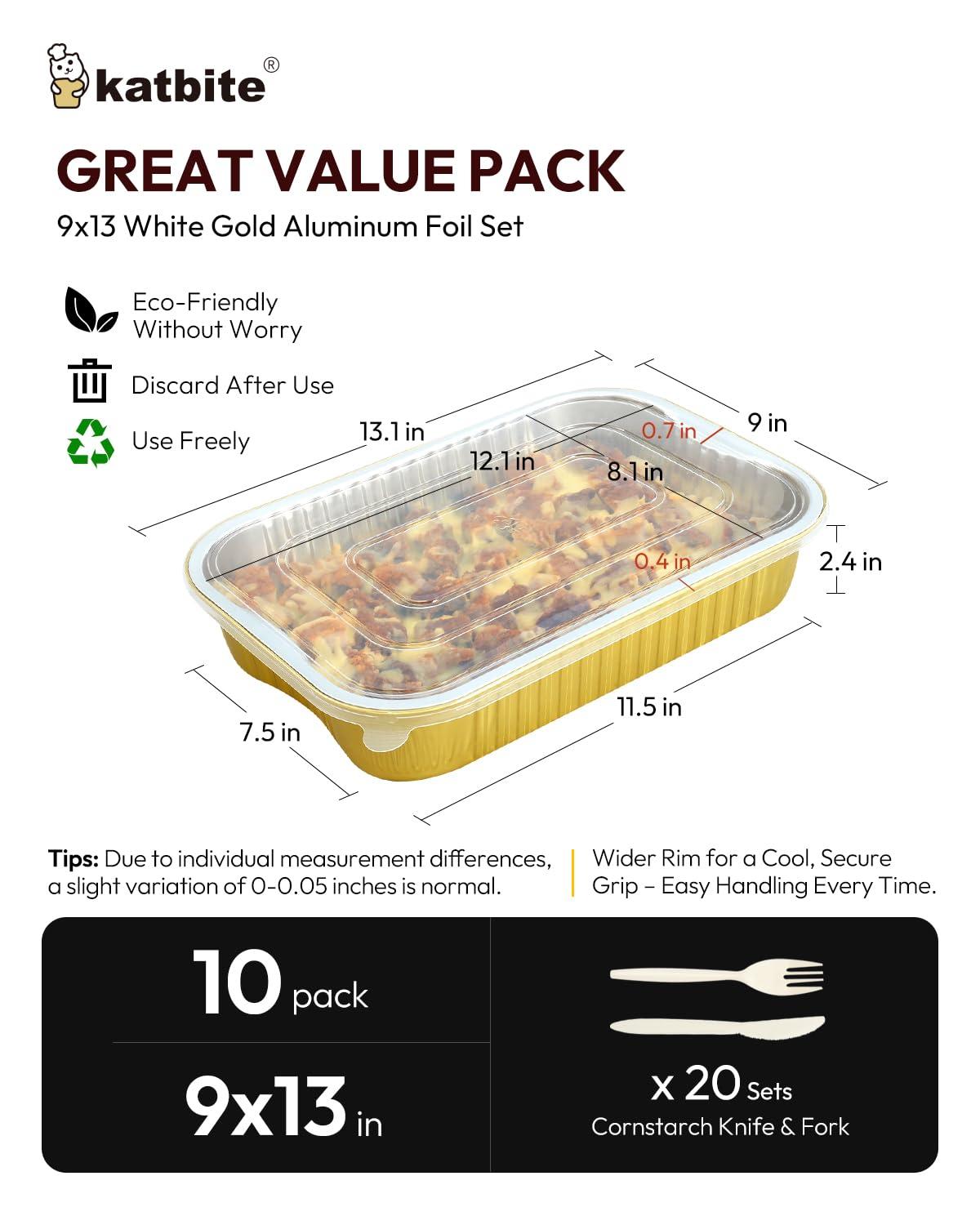 Reusable for a Greener Future: Katbite 9×13 aluminum pans with lids are reusable , providing an alternative to disposable and plastic containers. Using these baking pans reduces the need for single-use products. Katbite foil pans are sturdy enough to be reused multiple times without damage, contributing to reduced environmental pollution. By choosing these aluminum pans, you are making a conscious decision to support a healthier planet, while enjoying the convenience of a reliable kitchen tool.