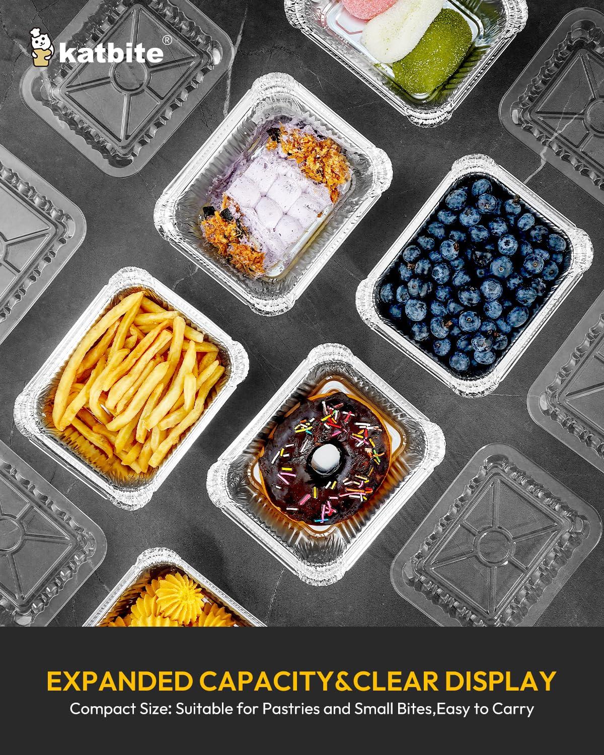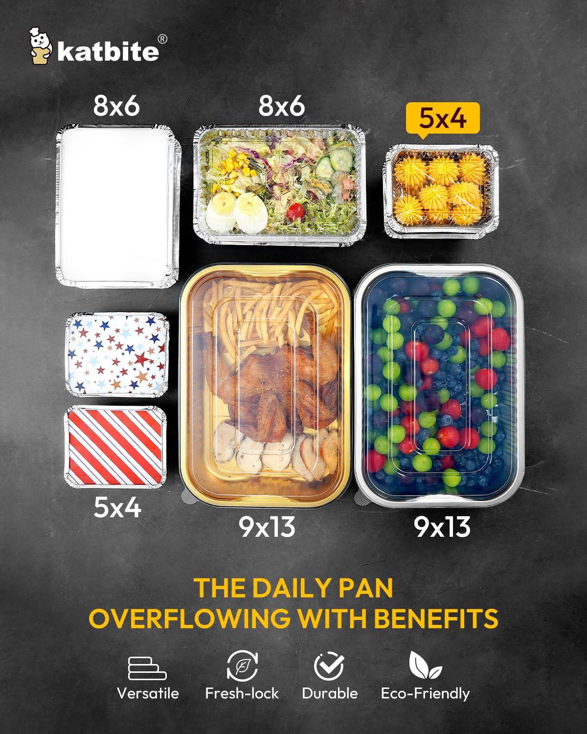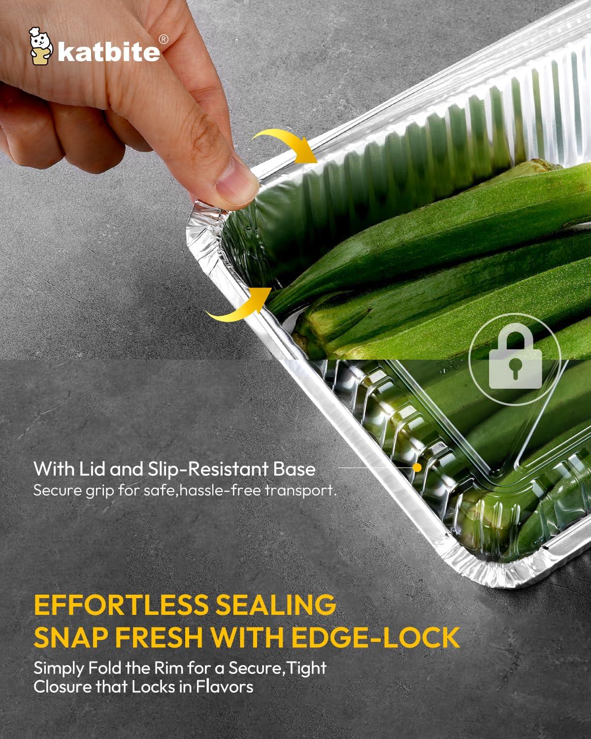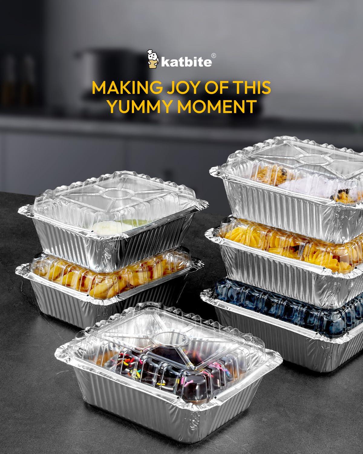 Healthy & Fresh with Premium Foil Pans : Prepare healthy, home-cooked meals effortlessly with Katbite small aluminum pans with lids. These mini aluminum pans with lids ensure your meals heat up quickly and stay fresh with a simple one-handed edge seal, outperforming clamshell containers. Enjoy the convenience and durability of our extra-sturdy aluminum foil pans-Ideal for catering, restaurants, and home use, these recyclable aluminum pans make meal prep and storage a breeze, supporting a healthy lifestyle.