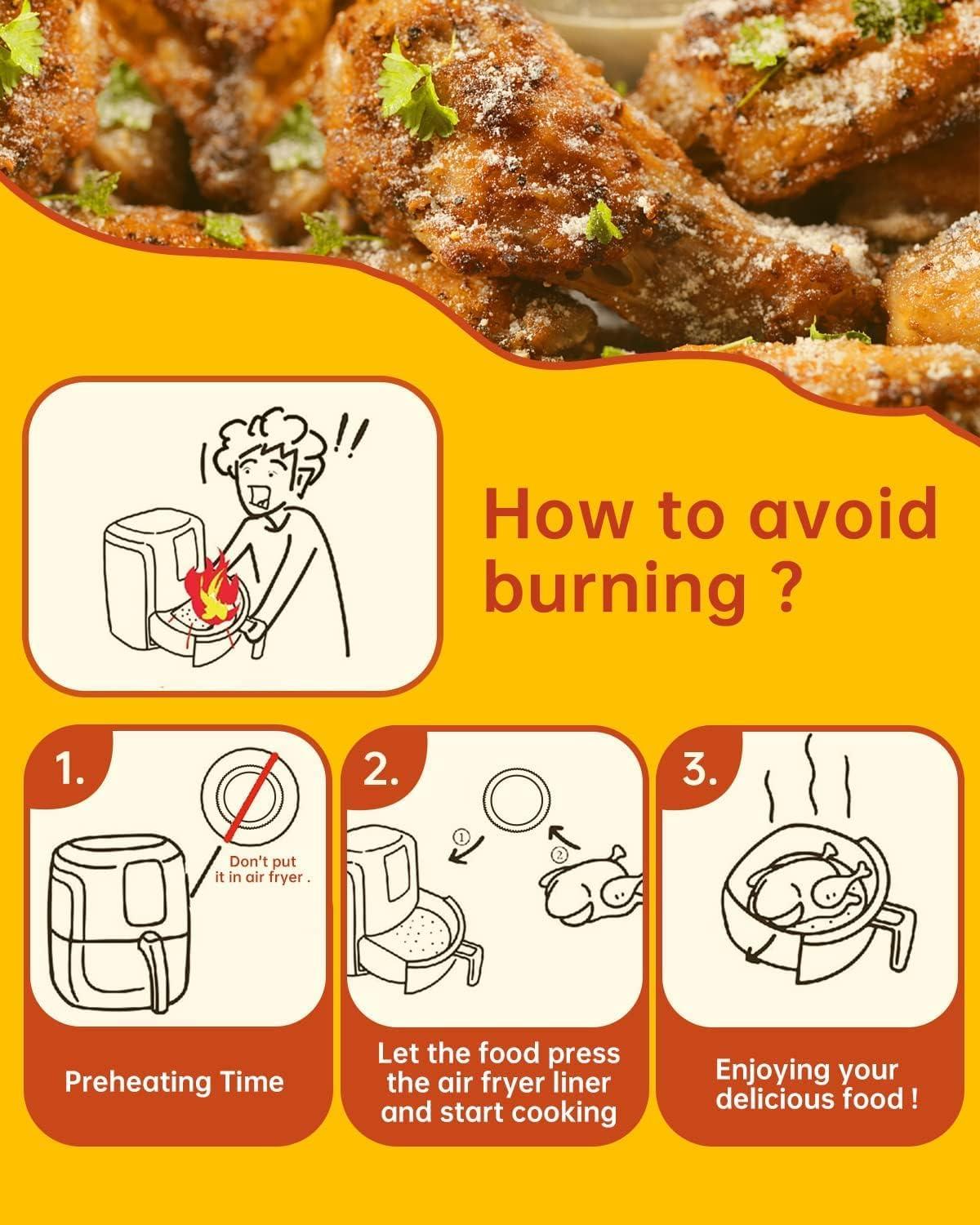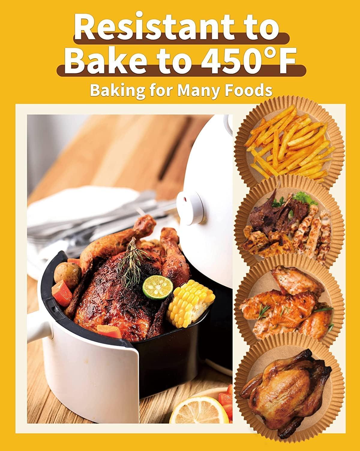 NATURAL & FOOD SAFETY – Air fryer disposable paper liner parchment papers are made of pure wood pulp and totally fluorescent free. Unbleached, Non-toxic, Non-stick ensure food safety and taste and keep food complete appearance such as bread, chicken, snacks.