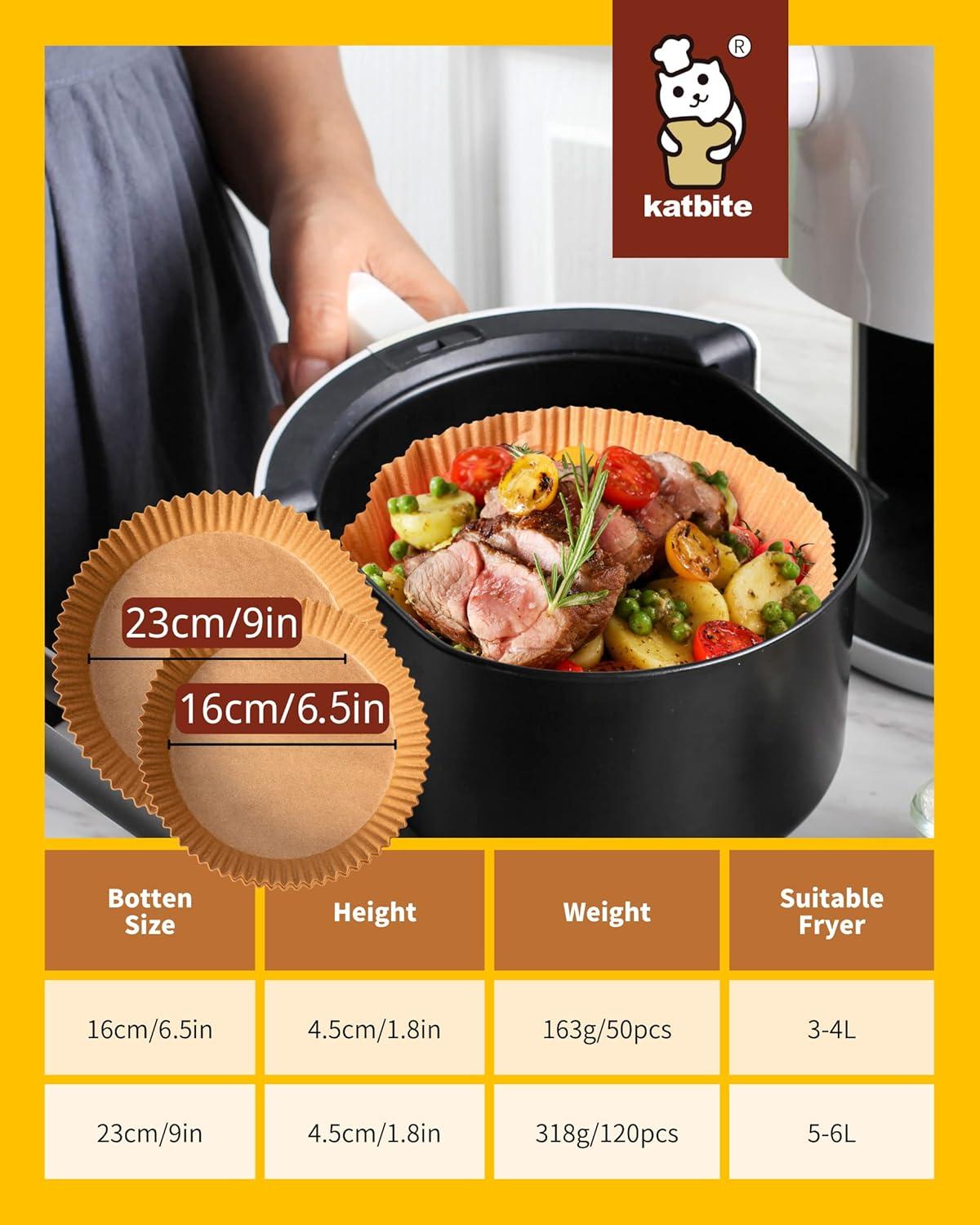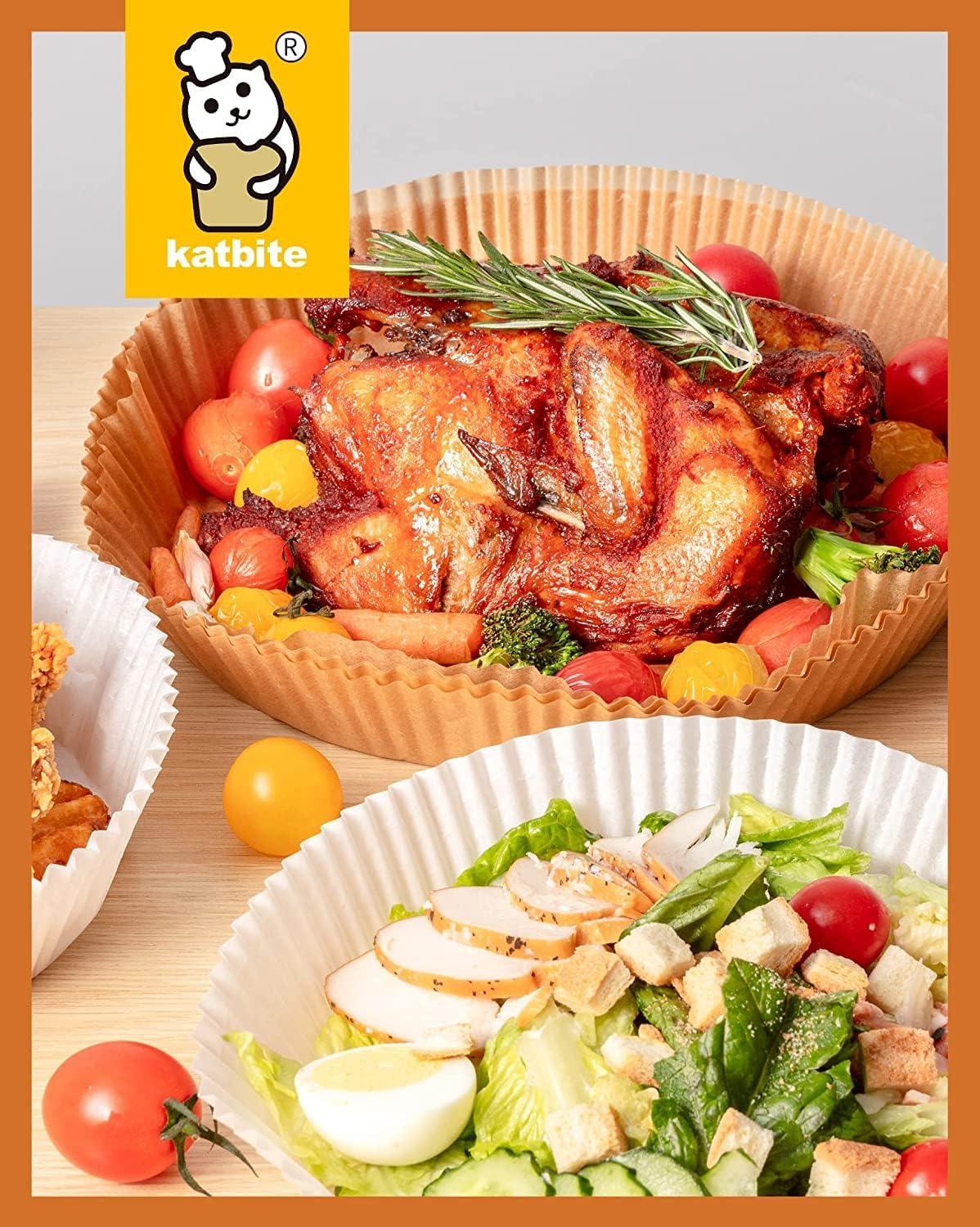 HEAVY DUTY & EXTRA STRONG – Bottom size is 6.3 inch, suitable for 3-4L air fryer pot. Katbite air fryer parchment paper is made of 45gsm paper compared to 35gsm paper, extra thicker and stronger, make it non-stick and oil proof. Perfect for air fryer, cake pan, bamboo or metal steamer.