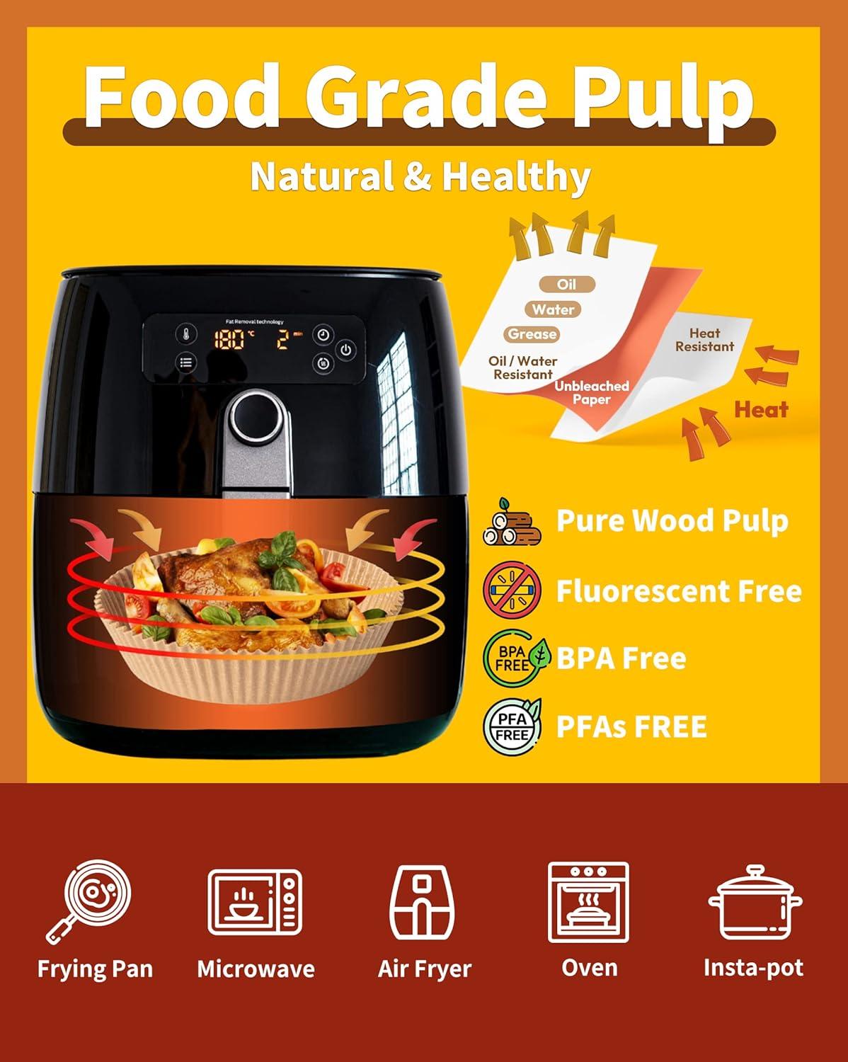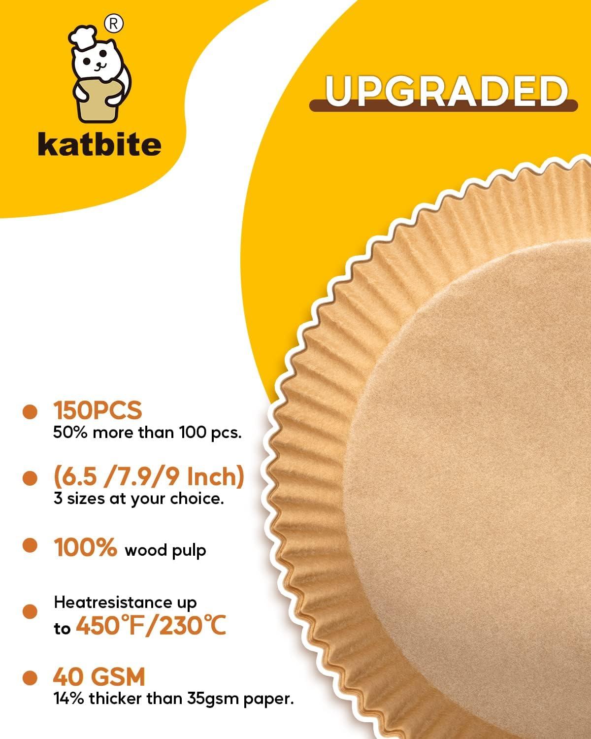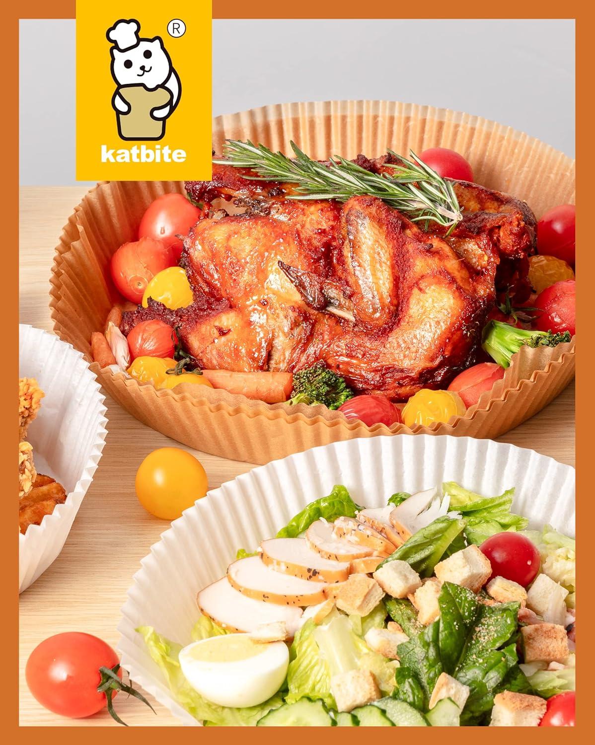 👍STRONG & SAFE -Katbite airfryer liner is made of 40gsm parchment paper, firmer than most commonly seen 35gsm paper. Double side coated with food grade silicone oil on Katbite air fryers liners can prevent food from sticking.