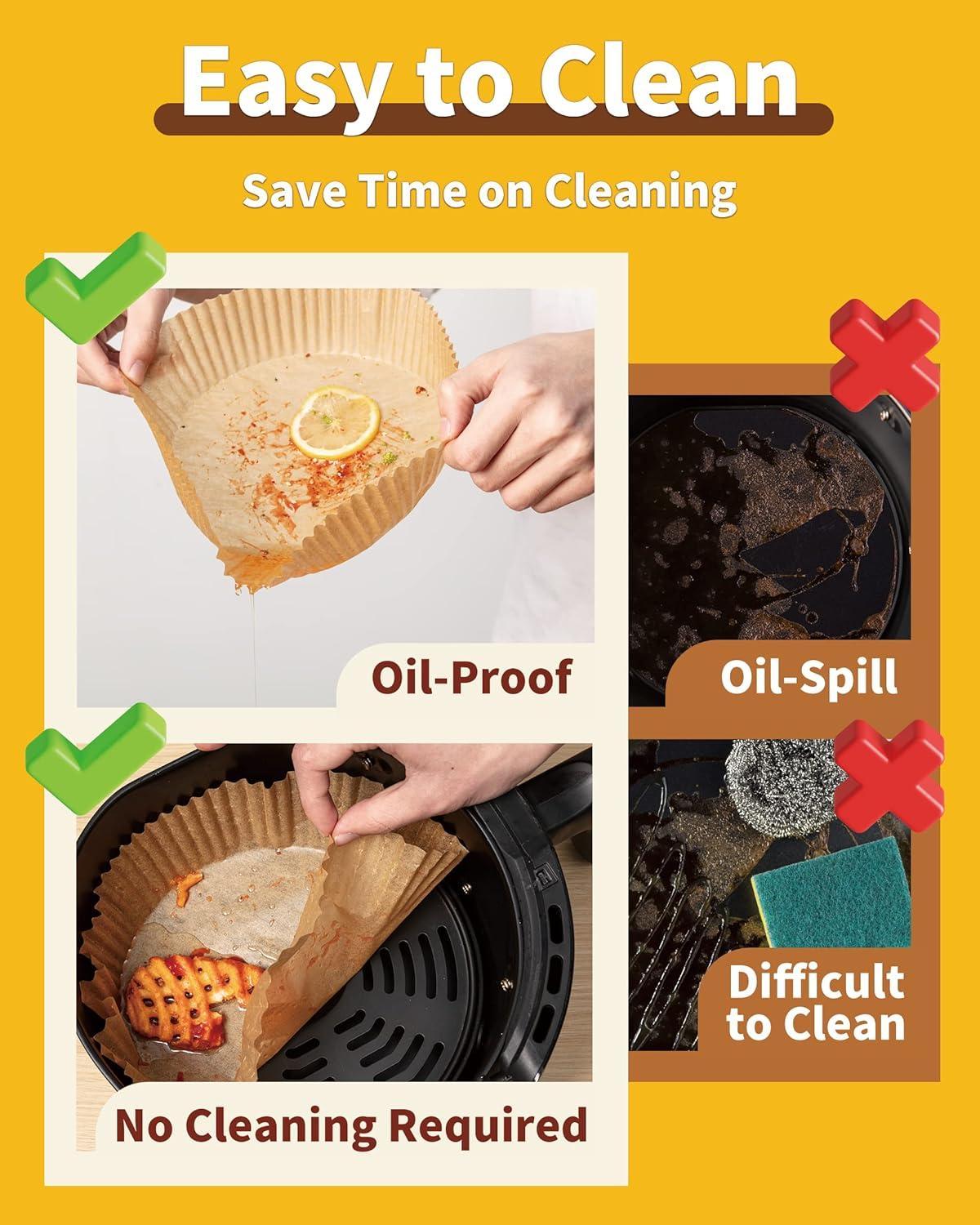 👍SAVE TIME & EASY CLEAN – Say goodbye to mess after using you air fryer.Katbite airfryer paper liners can help you save your cleaning time. You can just easily toss it away after use.