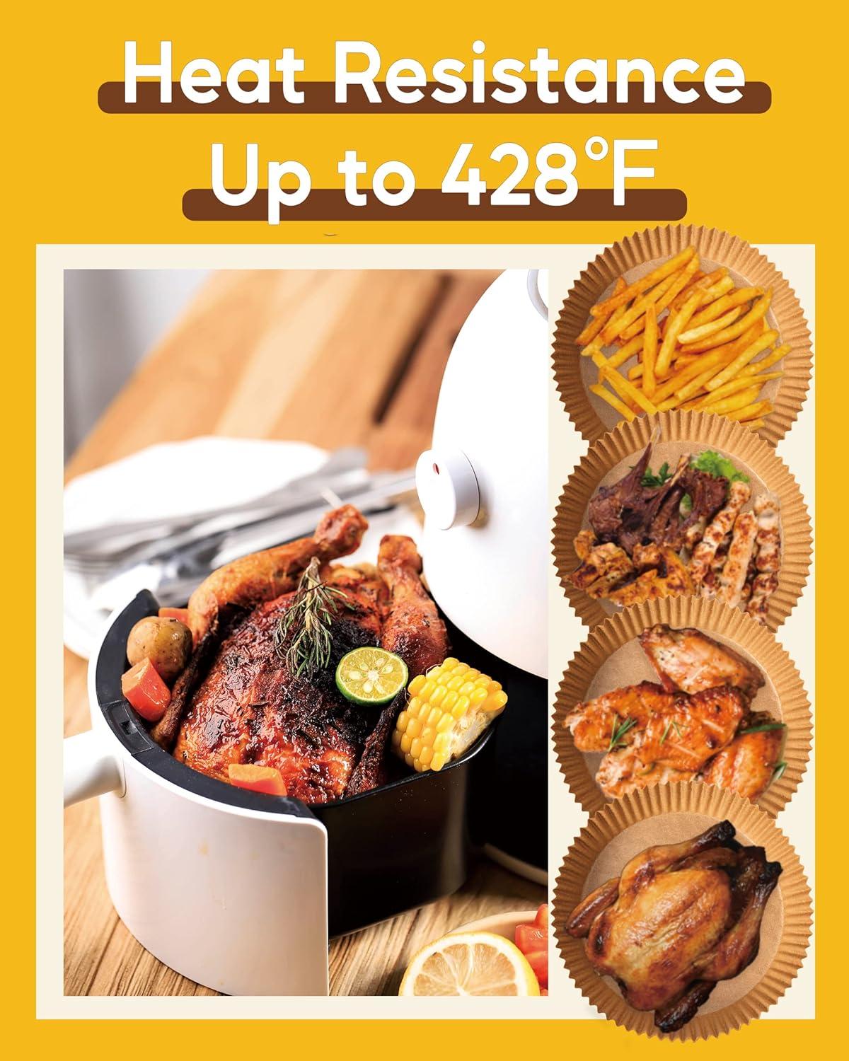👍CAUTION – Heat resistance up to 428℉. Hot air in the pot may blow the air fryer paper to heating elements and cause unwanted fire. So please add enough weight of food on your liners to ensure a pleasant and safe cooking session.