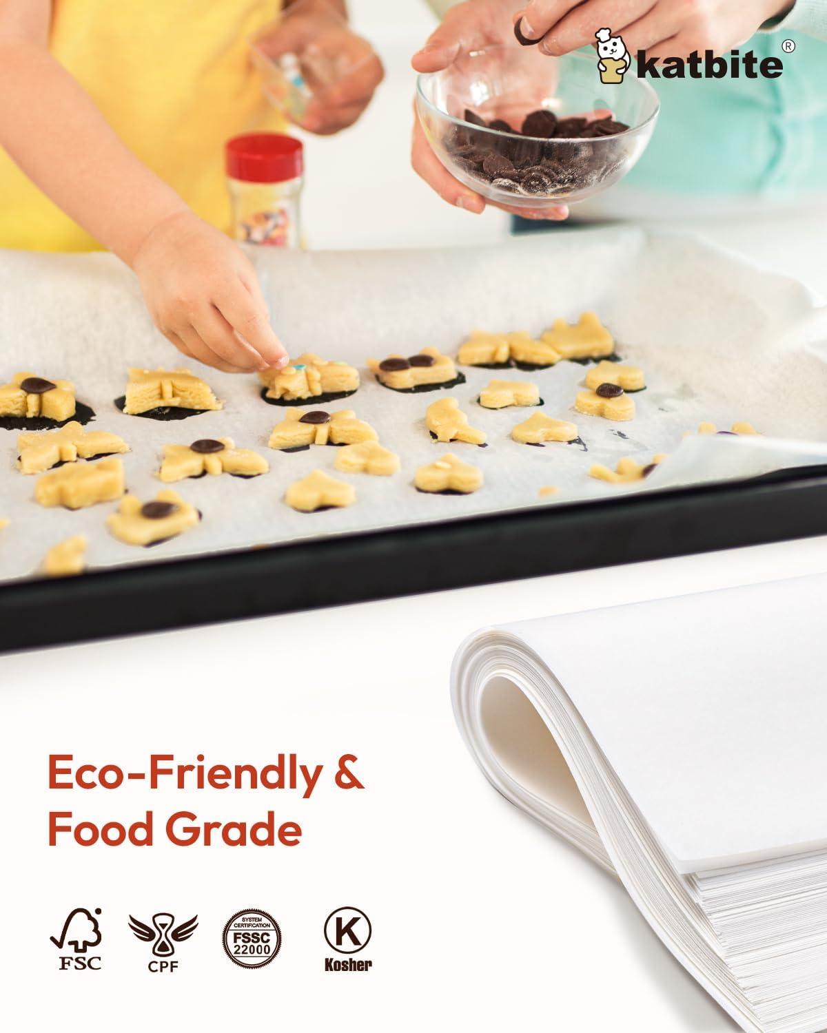 NON-STICK & EASY TO CLEAN – Do you love baking but hate cleaning up? Katbite nonstick parchment paper for baking makes it possible and even works great! Food can be easily slide off from the baking tray and you just need to remove the paper and throw it away after baking.