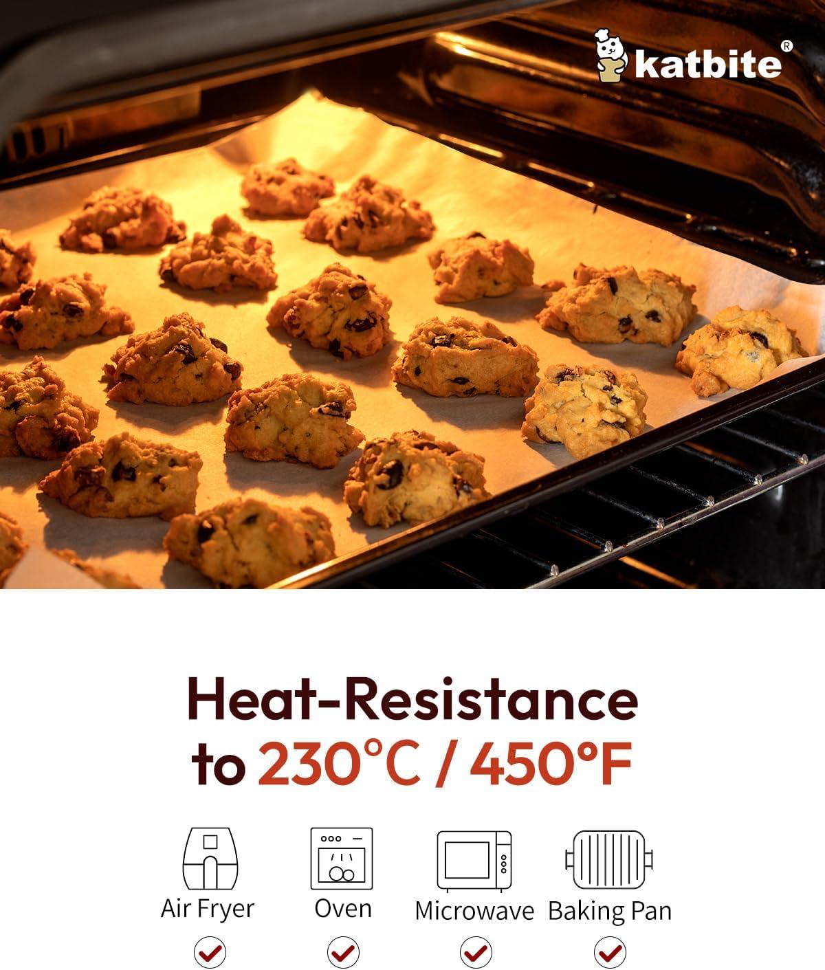 MULTI-PURPOSE—Do you think parchment baking sheets is only used for food baking? NO! Because Katbite parchment paper's temperature resistance is from -68° F to 450° F, you can find it everywhere in kitchen whether in freezer, microwave or air fryer as long as you can think of it.