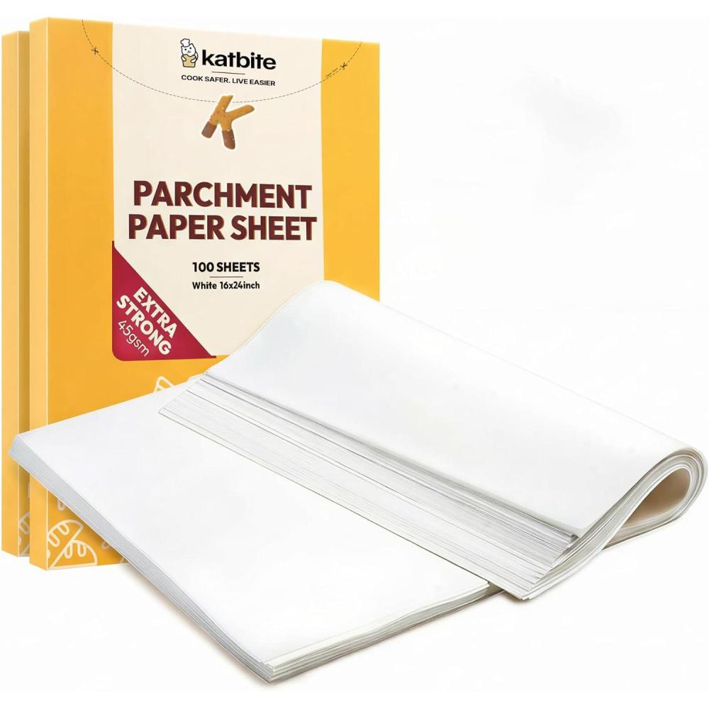 Katbite 16×24 inch Heavy Duty Parchment Paper Sheets, 200Pcs Precut Non-Stick Full Parchment Sheets for Baking, Cooking, Grilling, Frying and Steaming, Full Sheet Baking Pan Liners [Advanced Series](16″x24″-500)