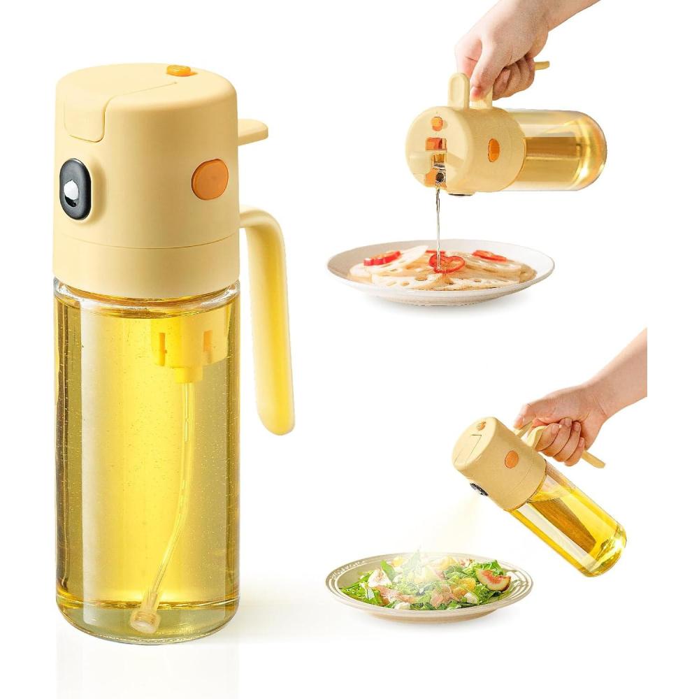 Dual-Mode Oil Sprayer: Innovative spray & pour dual-function design solves diverse cooking needs from frying to dressing – perfect for roast chicken, steak, salad, toast. Works with ovens, air fryers, pans. Gravity-sensing cap auto-opens during use and self-seals when idle. Hands-free operation for kitchen efficiency.