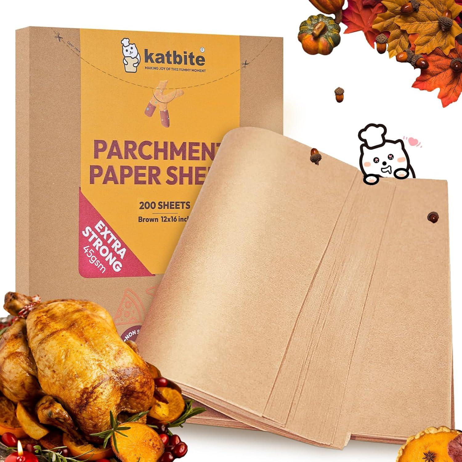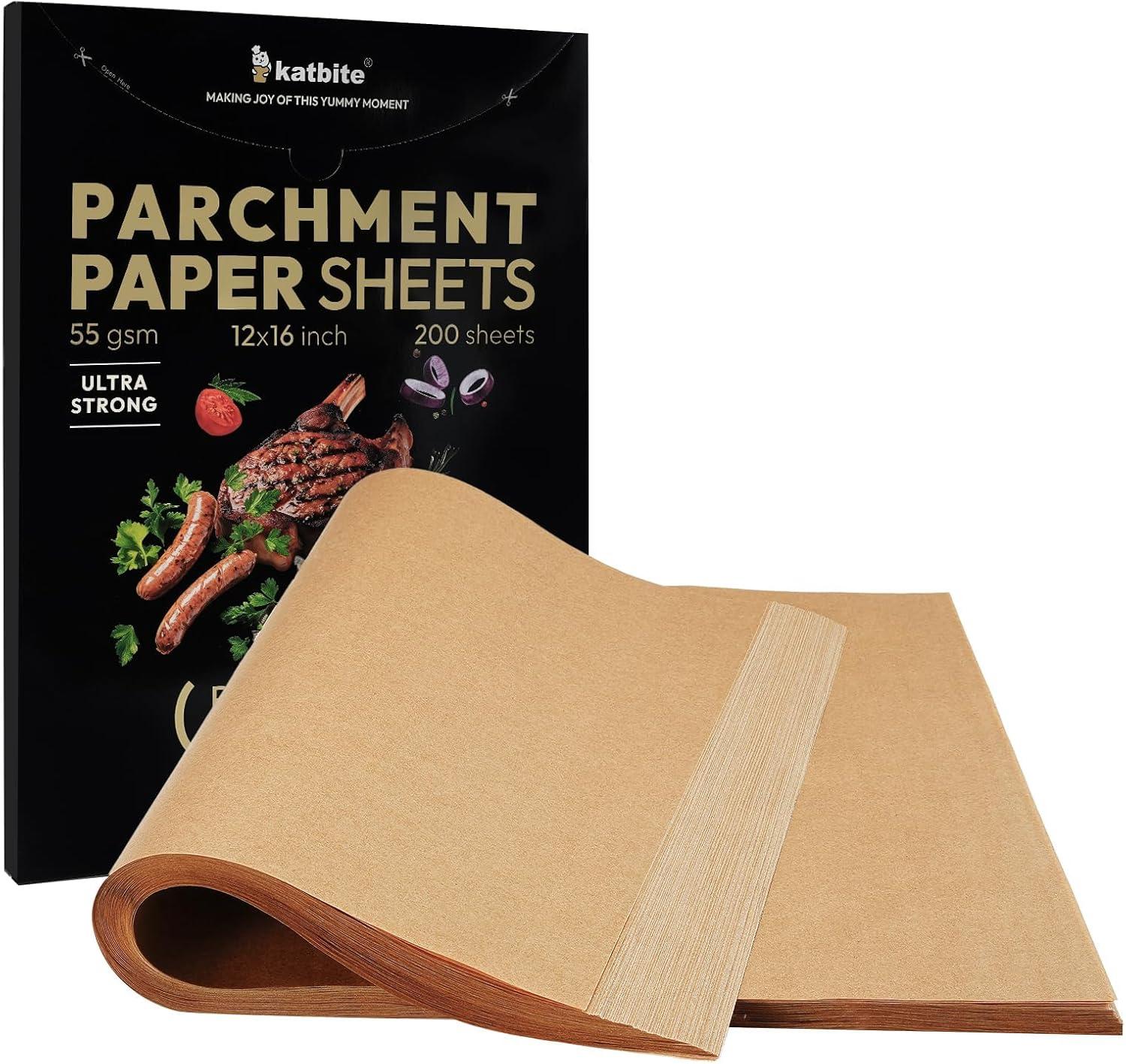 Katbite 200 Pcs Parchment Paper Sheets Performance Series 12x16IN Ultra-strong & Katbite 200Pcs 12×16 In Unbleached Parchment Paper for Baking Advanced Series