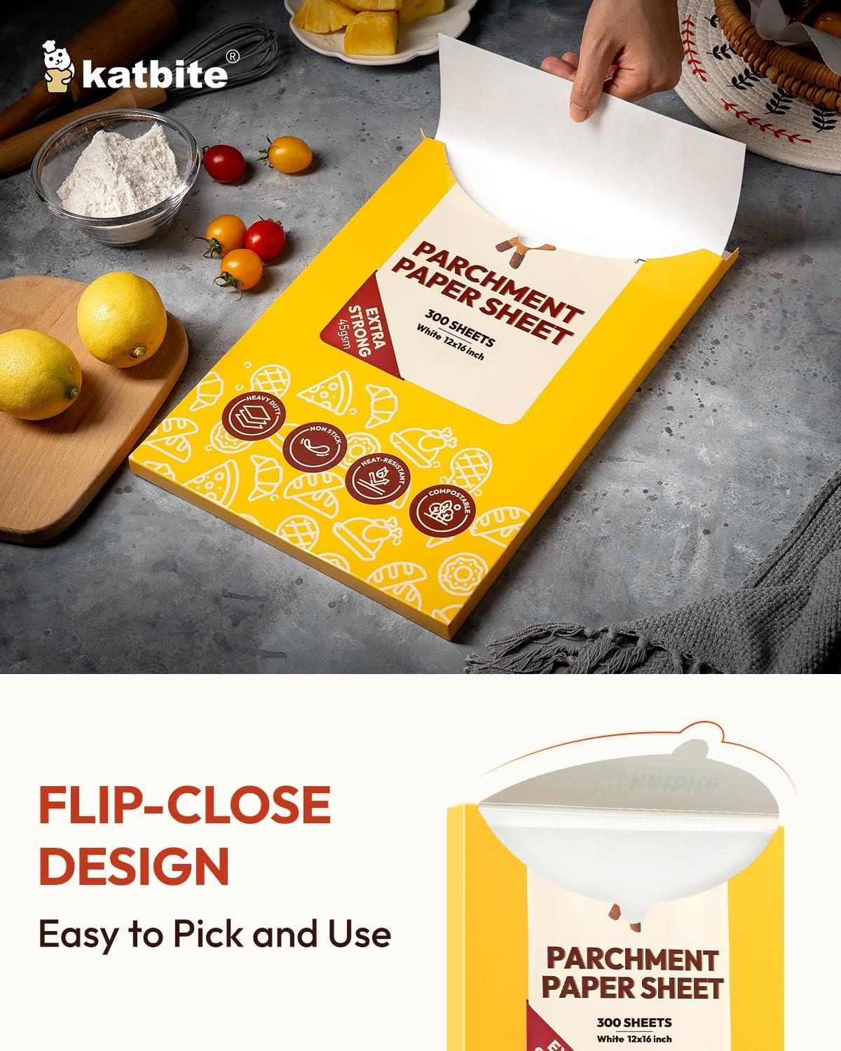 Katbite 200PCS 12x16 In Heavy Duty Flat Parchment Paper, Parchment Paper Sheets for Baking Cookies, Cooking, Frying, Air Fryer, Grilling Rack, Oven(12x16 Inch)[Advanced Series](12"x16"-300)