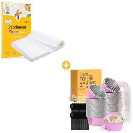 Katbite 200PCS 12×16″ Parchment Paper & Disposable Ramekins with Lids 60 Pack 5oz