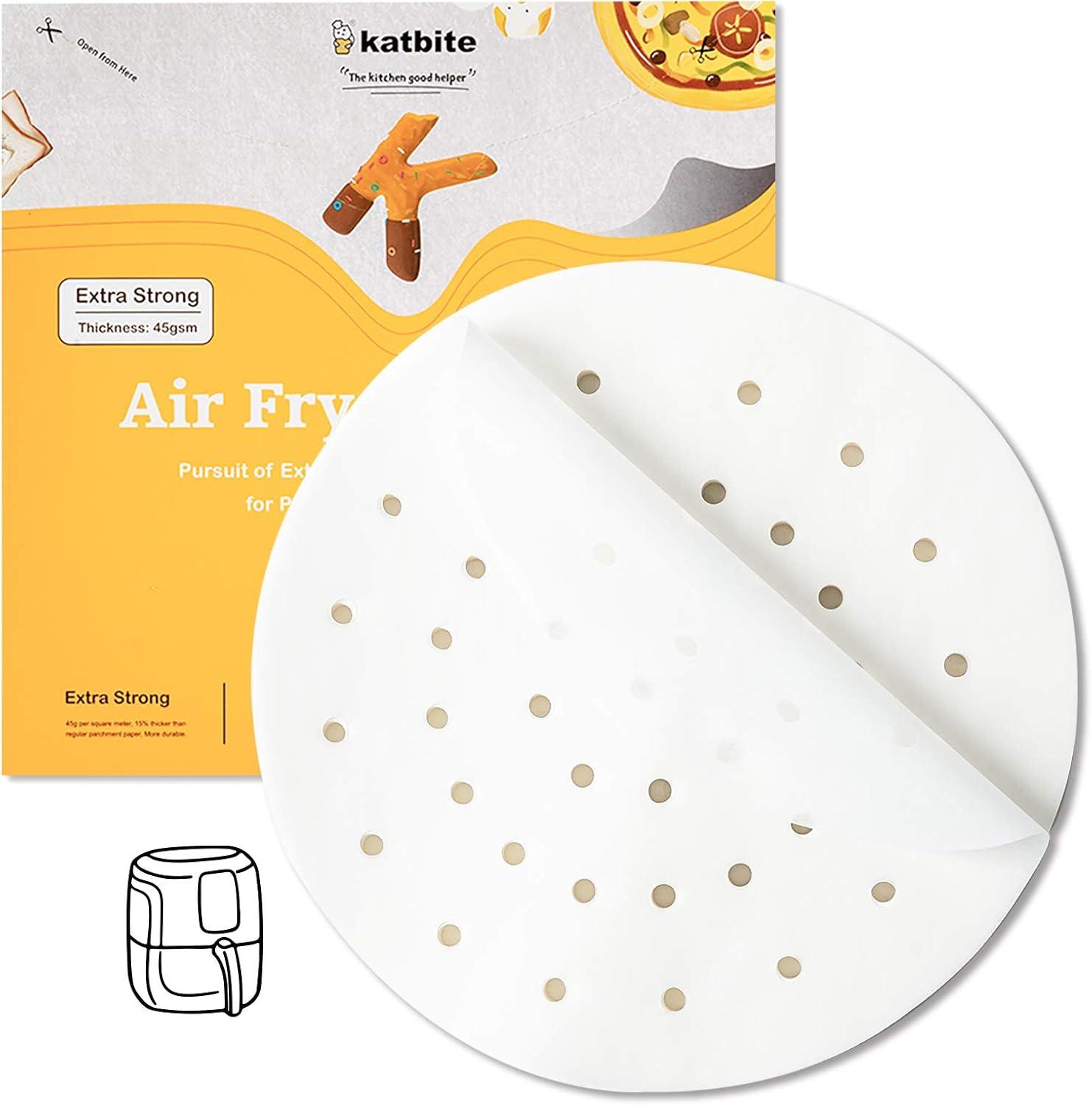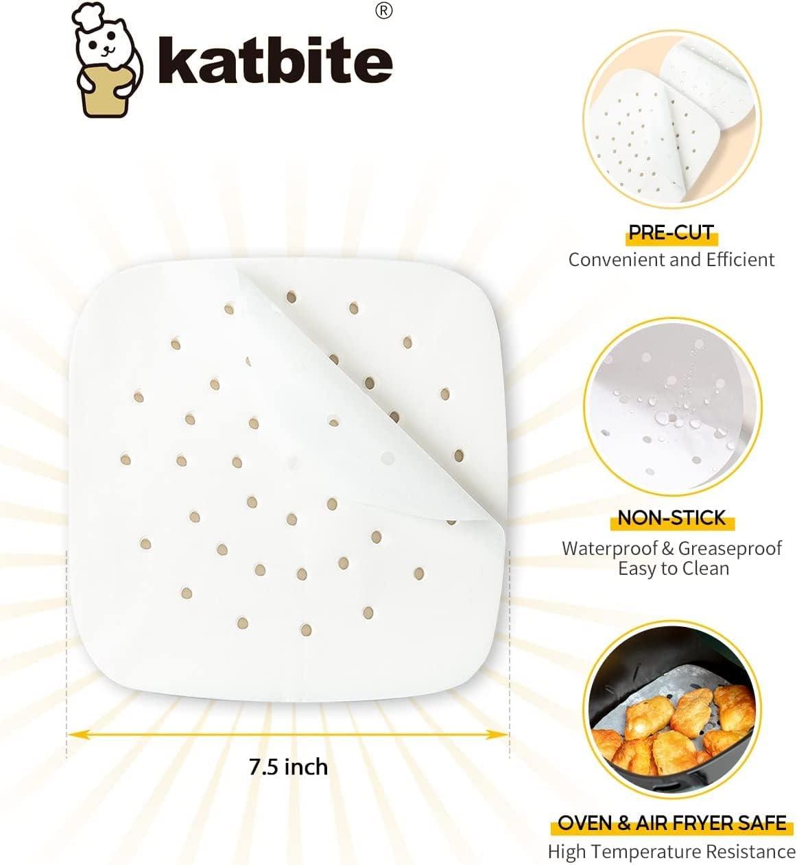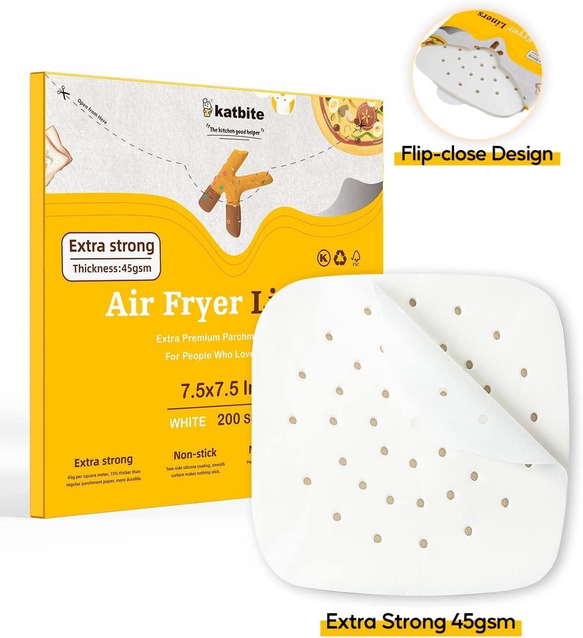Katbite 200Pcs 7.5 In Air Fryer Liners, Parchment Paper for Air Fryer, Unbleached Disposable Air Fryer Liners Paper Sheets Square for Air Fryer, Steaming Basket, Oven Baking(White)