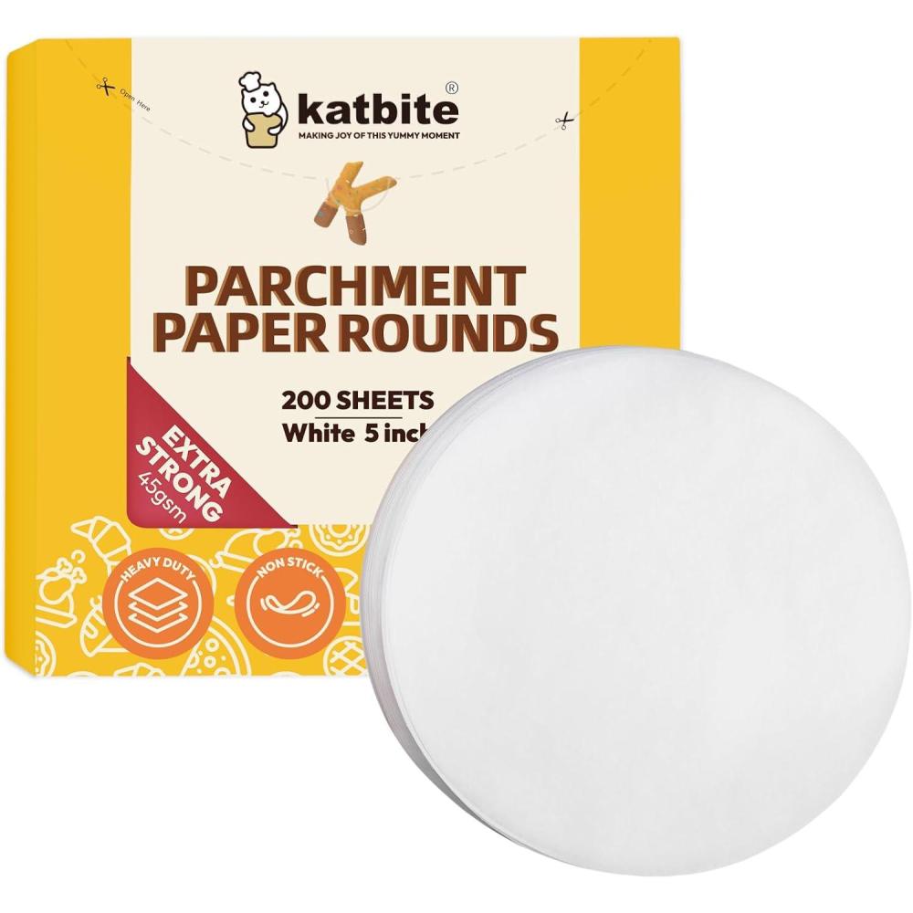 Katbite 200Pcs 9 Inch Parchment Paper Rounds, Unbleached & Non-stick, Precut Parchment Circles for Cheesecake Spring Pans, Storage/Freezing Hamburger Patties(5inch-200)
