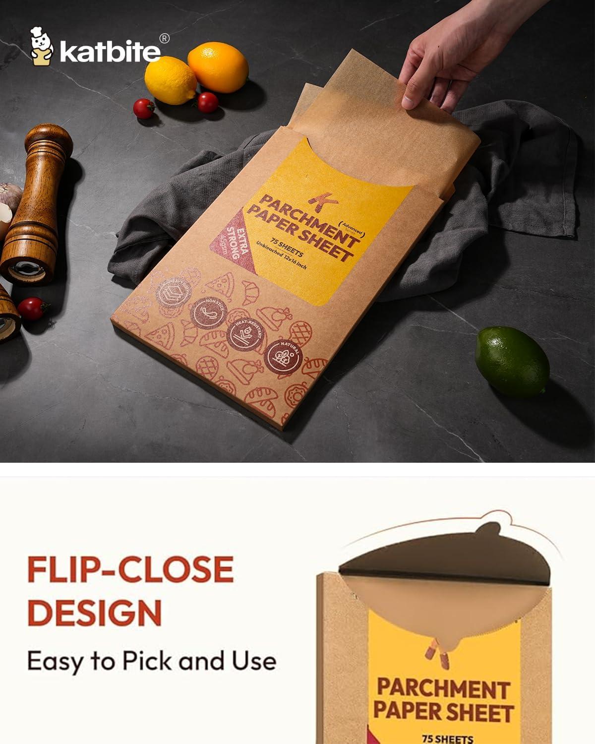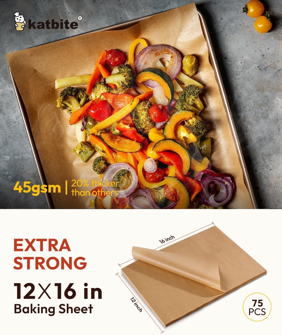 Katbite 200Pcs 9x13 inch Heavy Duty Unbleached Parchment Paper, Parchment Paper Sheets for Baking Cookies, Cooking, Frying, Air Fryer, Grilling Rack, Oven(9x13 Inch)(12"x16"-75)