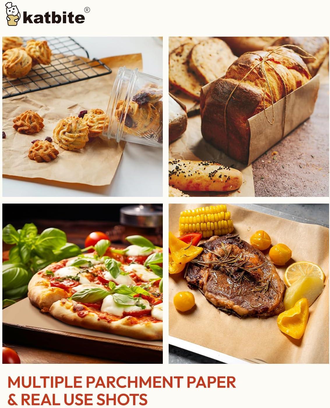 NON-STICK & EASY TO CLEAN – Do you love baking but hate cleaning up? Katbite parchment paper for baking makes it possible and even works great! Food can be easily slide off from the baking tray and you just need to remove the paper and throw it away after baking.