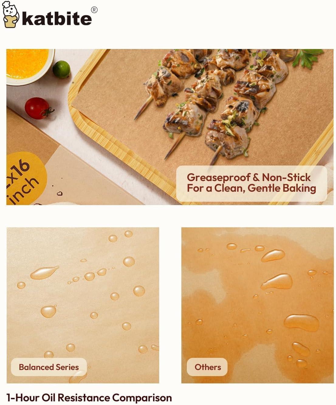 Non-Stick & Easy to Clean: Bake effortlessly with Katbite’s non-stick balanced series parchment paper sheets. Designed for baking enthusiasts, our sheets ensure food slides off the tray smoothly, enhancing your cooking experience. Perfect for cookies, roasting vegetables, or cakes, Katbite’s parchment paper simplifies cleanup and eliminates messy pans. Enjoy hassle-free cooking and easy cleanup with Katbite – your ideal kitchen companion!