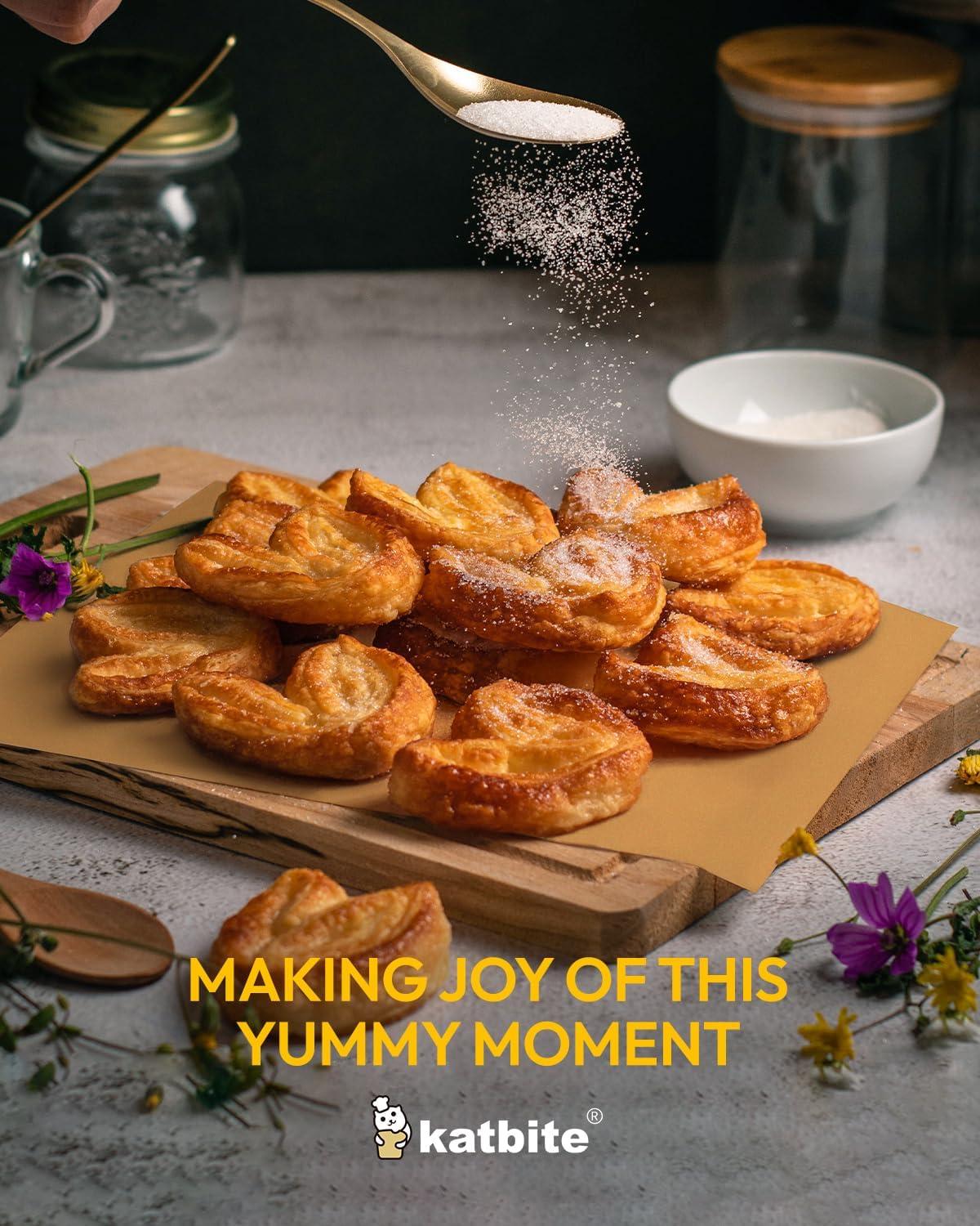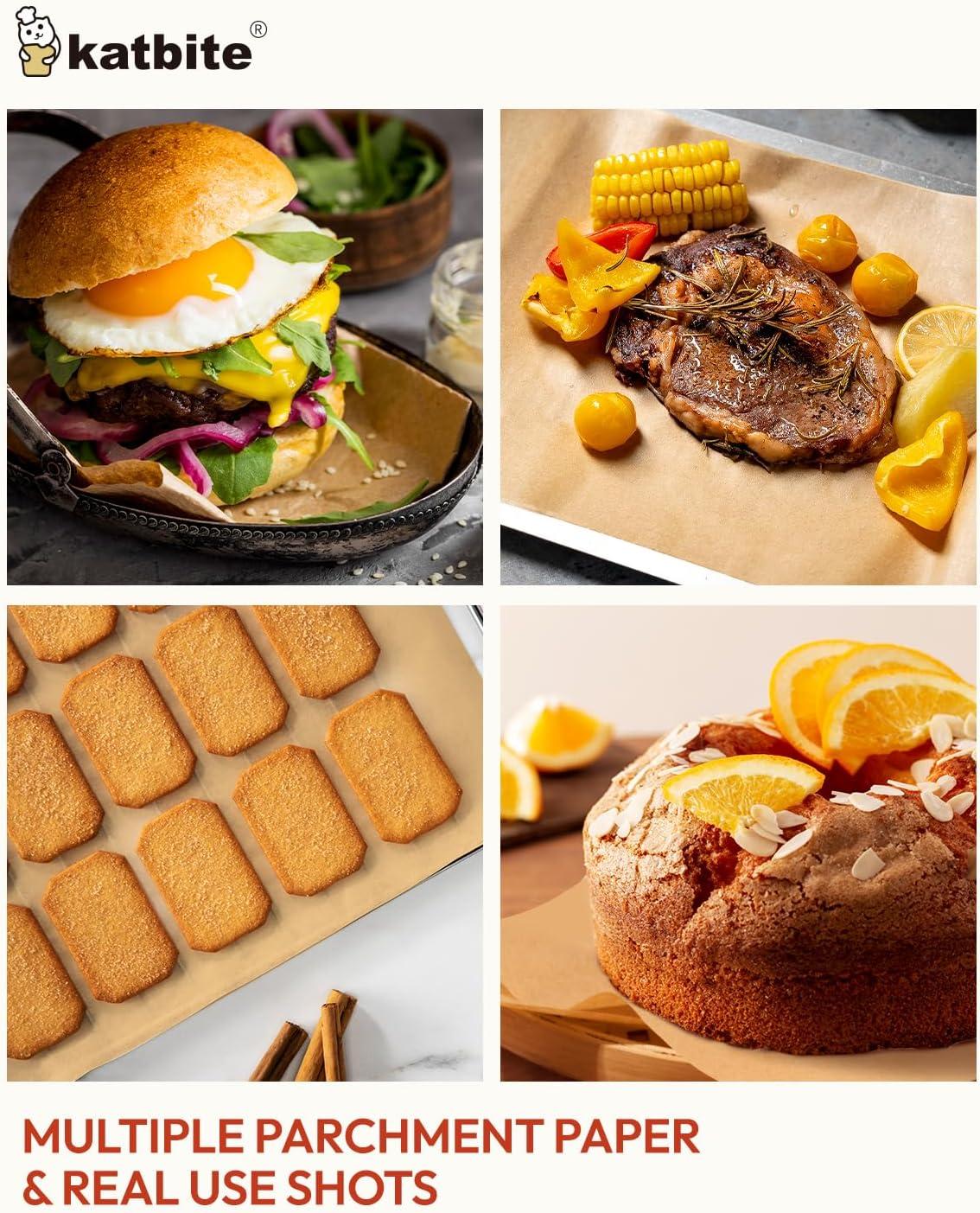 NON-STICK & EASY TO CLEAN – Do you love baking but hate cleaning up? Katbite parchment paper for baking makes it possible and even works great! Food can be easily slide off from the baking tray and you just need to remove the paper and throw it away after baking.