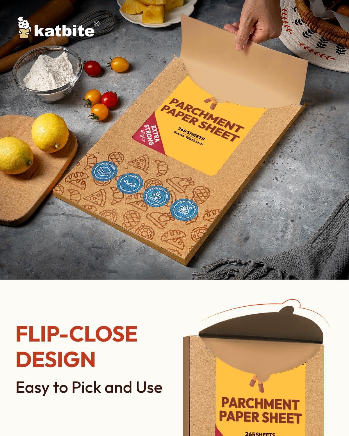 Katbite 400Pcs 9x13 inch Heavy Duty Unbleached Parchment Paper, Parchment Paper Sheets for Baking Cookies, Cooking, Frying, Air Fryer, Grilling Rack, Oven(9x13 Inch)(10"x15"-265)