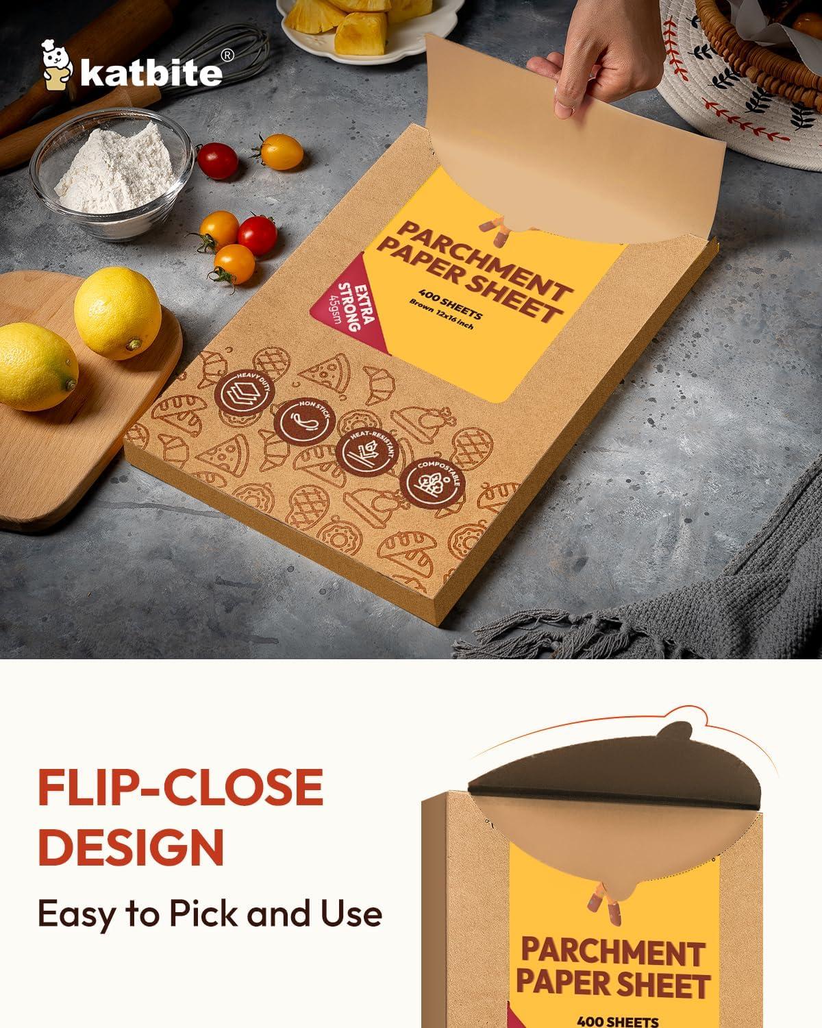 Katbite 400Pcs 9x13 inch Heavy Duty Unbleached Parchment Paper, Parchment Paper Sheets for Baking Cookies, Cooking, Frying, Air Fryer, Grilling Rack, Oven(9x13 Inch)(12"x16"-400)