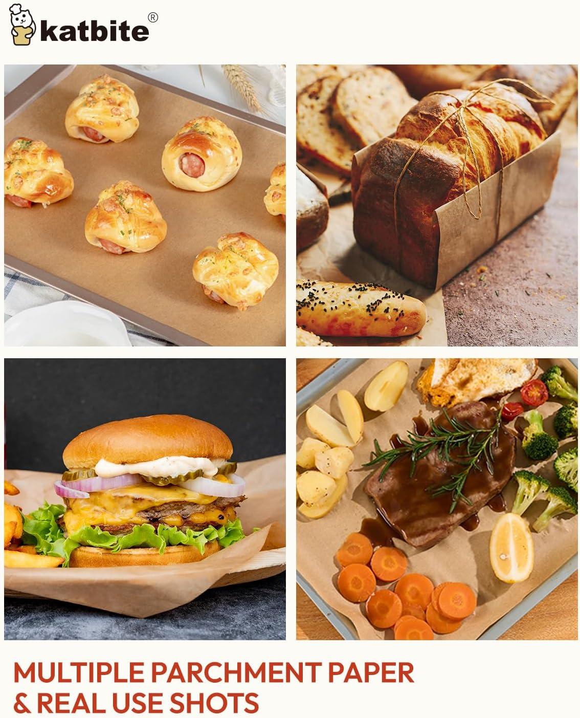 NON-STICK & EASY TO CLEAN – Do you love baking but hate cleaning up? Katbite parchment paper for baking makes it possible and even works great! Food can be easily slide off from the baking tray and you just need to remove the paper and throw it away after baking.