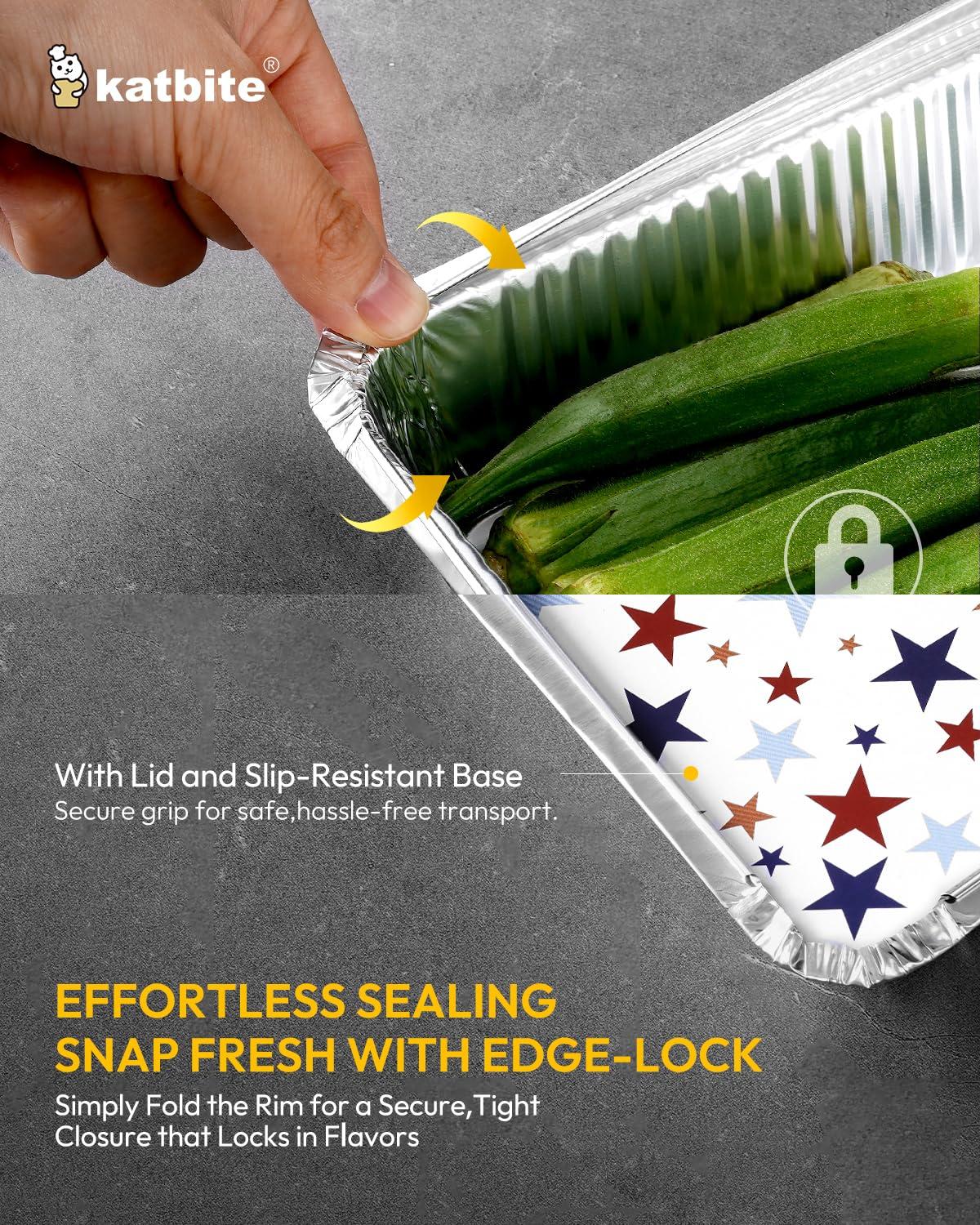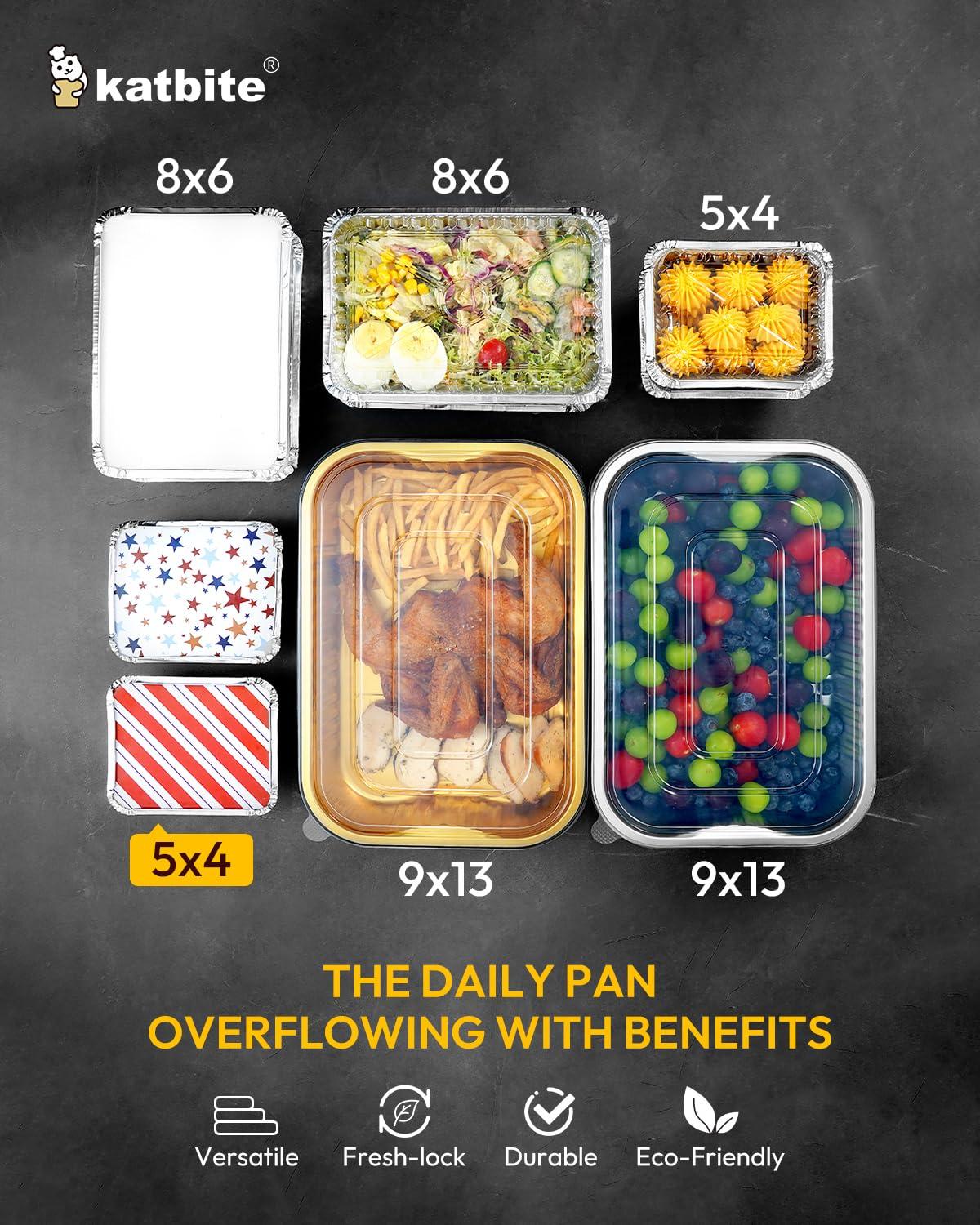 Healthy & Fresh with Premium Foil Pans : Prepare healthy, home-cooked meals effortlessly with Katbite small aluminum pans with lids. These mini aluminum pans with lids ensure your meals heat up quickly and stay fresh with a simple one-handed edge seal, outperforming clamshell containers. Enjoy the convenience and durability of our extra-sturdy aluminum foil pans-Ideal for catering, restaurants, and home use, these recyclable aluminum pans make meal prep and storage a breeze, supporting a healthy lifestyle.