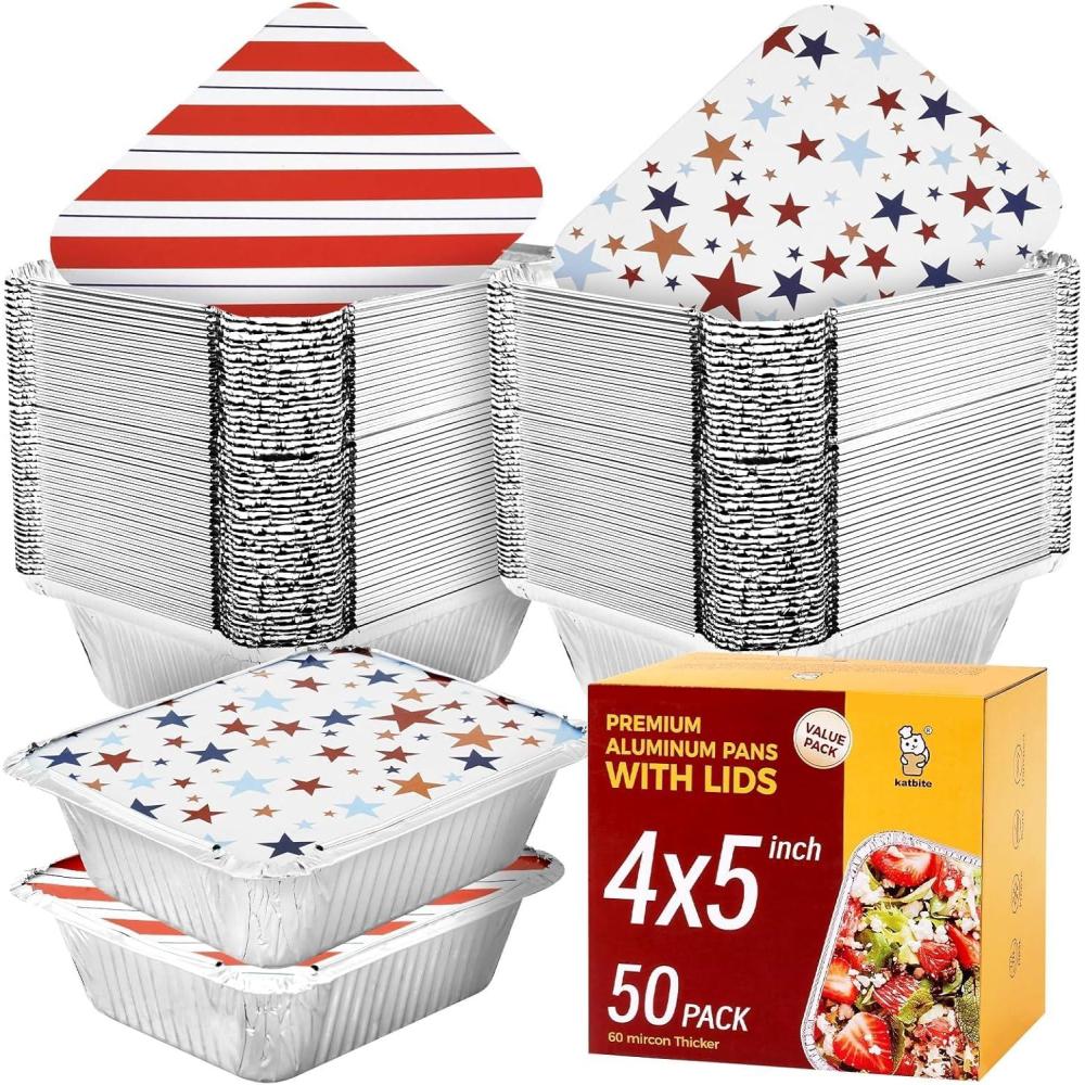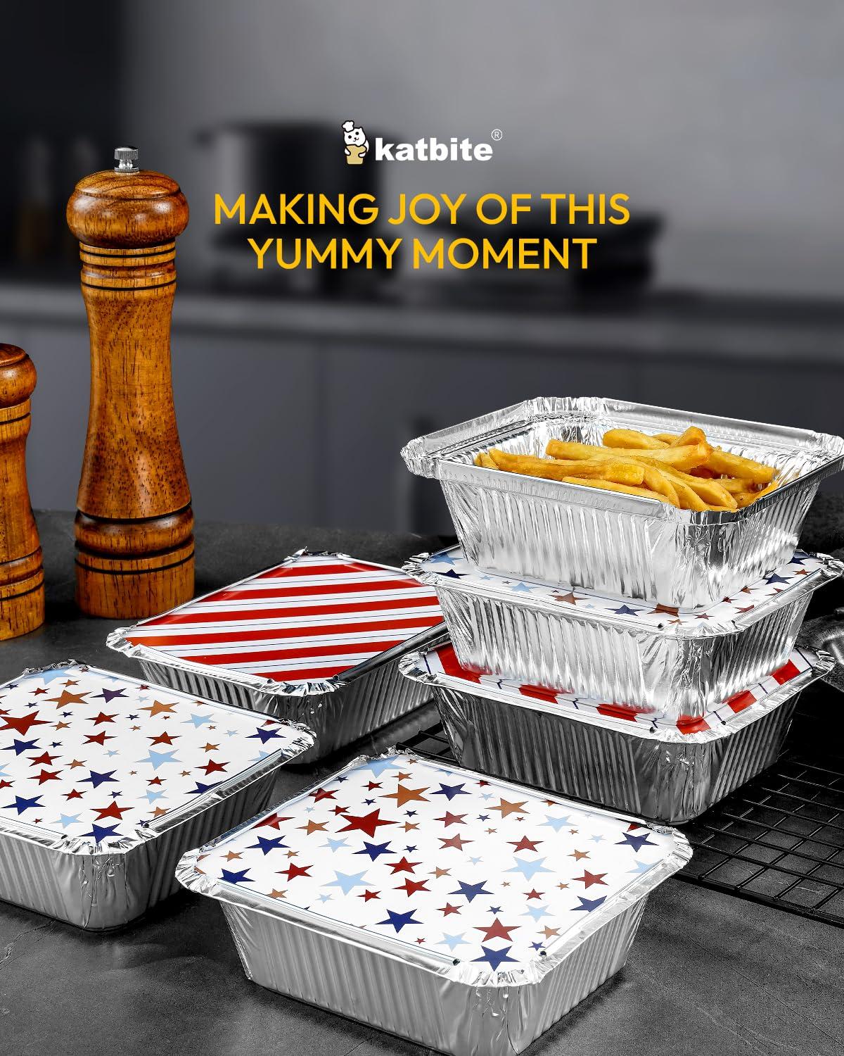 Convenience Meets Durability: Just one pack of Katbite 50-count aluminum pans with lids can replace heavy dishes, serving trays, cling film, plastic jars, and bags. Cleanup is a breeze-gather leftovers and recycle the foil pans. A pantry must-have, these disposable aluminum pans are perfect for households, kitchens, catering, professional food services, take-outs, delis, camps, camps, and cooking classes. Ideal for freezer meals, baking, cakes, loaves, or cookie storage.