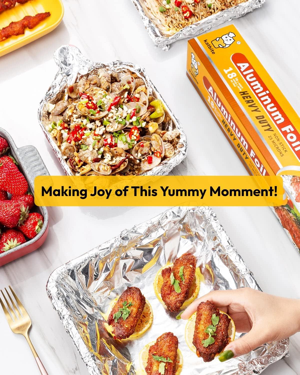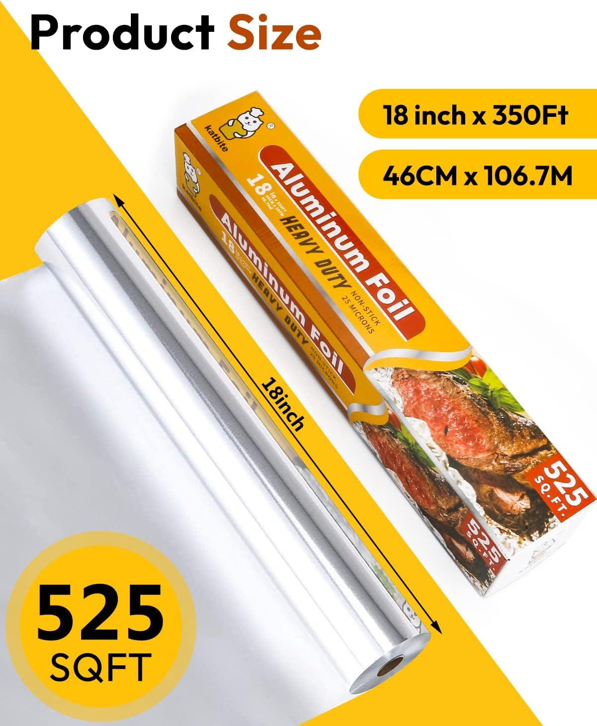 Katbite Aluminum Foil Heavy Duty 18 Inch Wide, 25 Micron Thick Heavy Duty Foil Aluminum Roll For Catering, Grilling, Roasting, Baking, Cooking, Strong Aluminum Foil Heavy Duty, 18 X 500 Sqft