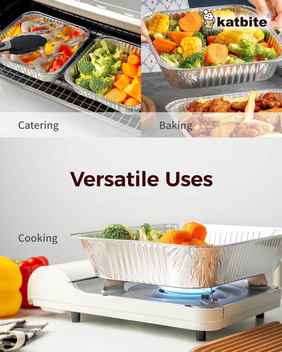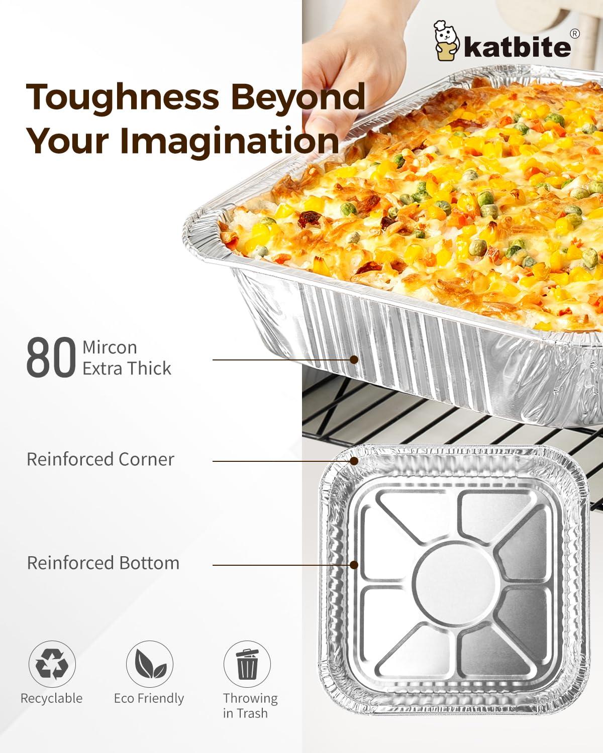 Premuim Quality – Aluminum disposable pans are made from premium quality 80mircon aluminum foil. Special pattern design on the bottom makes each foil pans firmer. Certified by SGS, it is safe and non-toxic.