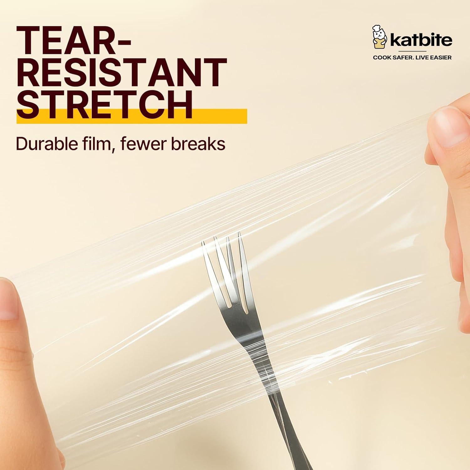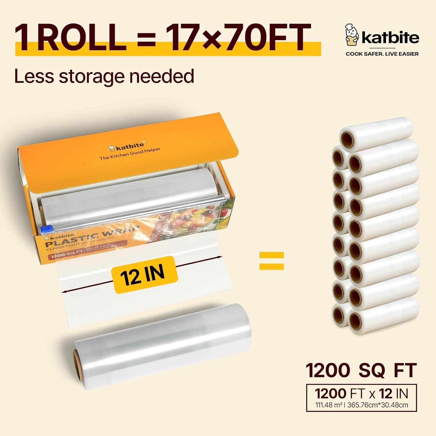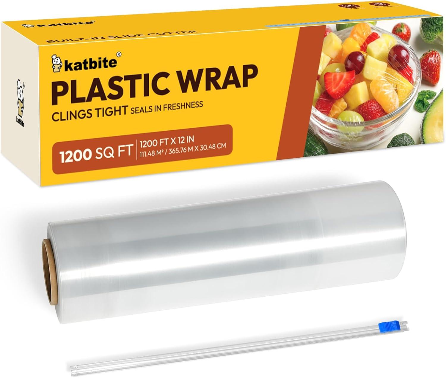 Katbite food plastic food wrap thick enough for daily use stronger for comercial use durable with slide cutter 12″wide 1200 feet long home and commercial use food service.