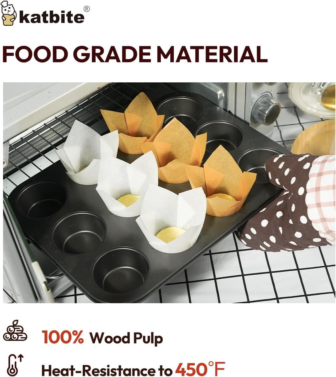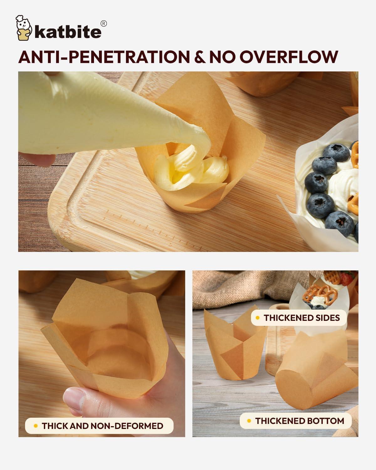 ELEGANT DESIGN:Compared with ordinary cupcake liners The tulip-shaped design will make the cupcakes look more elegant, and both your customers and guests will leave a deep impression on your cupcakes. If you put them together, it will make your display case look more delicate, and it will also make your cupcakes look more delicious.