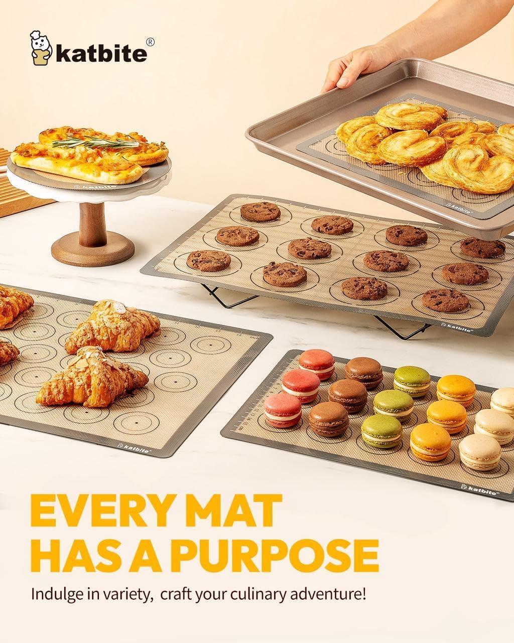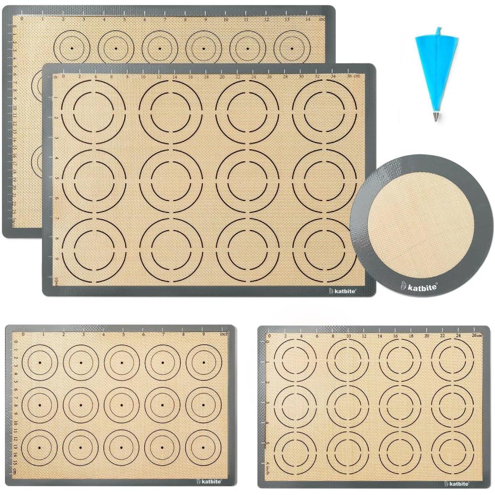 Silicone Baking Mat, Katbite Large Baking Mat Set of 3-2 Half Sheets Mats (11 5/8″ x 16 1/2″) + 1 Quarter Baking Sheets, Reusable & Nonstick Bakeware Mats for Cookies, Macarons, Bread and Pastry(Gray 5 Pack)